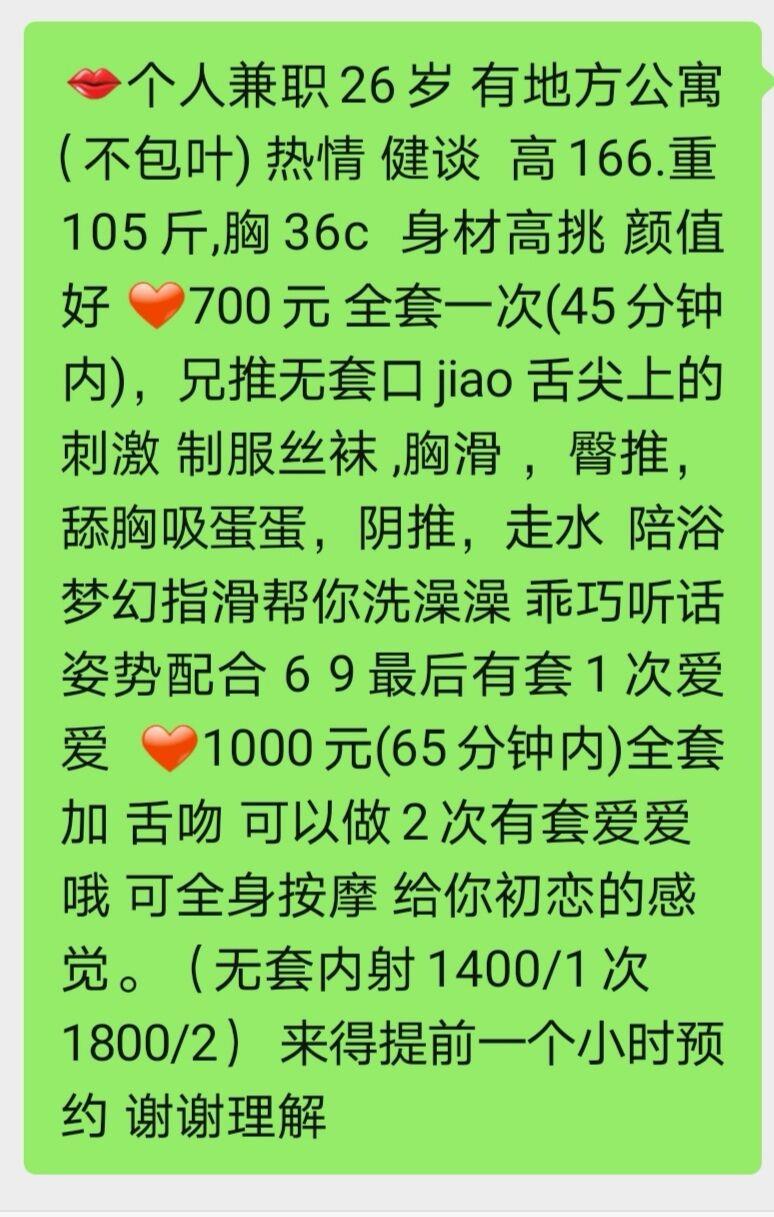 估计刚做的,好多服务都做,不然有的人上去搞一下就结束了,服务都有,还不催时间,水还多 还温柔,是个难